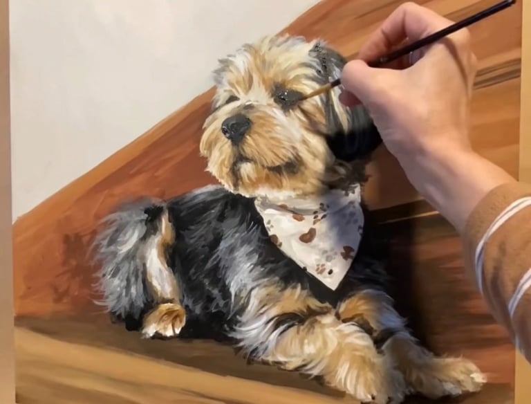 Upload your favorite pet photo to start your custom portrait. Details will be discussed before painting begins.
